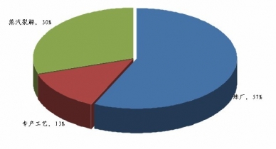 《2012-2016年中國丙烯產(chǎn)業(yè)運(yùn)營態(tài)勢與投資戰(zhàn)略研究報(bào)告》內(nèi)容顯示:按生產(chǎn)工藝來分,全球丙烯的生產(chǎn)來源主要包括三大類:乙烯蒸汽裂解裝置的副產(chǎn)物、煉廠的催化裂化裝置副產(chǎn)物以及近年來才開始高速發(fā)展的專產(chǎn)丙烯工藝(On-purpose production),包括丙烷脫氫制丙烯(PDH)、煤/甲醇制丙烯(MTP)及烯烴歧化裝置(Metathesis)等,目前僅占全球總產(chǎn)量的13%。