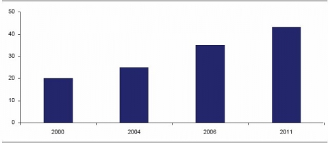 從市場(chǎng)規(guī)模上看,2006年達(dá)35億美元,到2011年整個(gè)市場(chǎng)規(guī)模已超過(guò)43億美元,年均復(fù)合增長(zhǎng)率達(dá)10%以上。從地區(qū)分布上看,北美和歐洲的藥用輔料市場(chǎng)規(guī)模約占全球總規(guī)模的78%,毫無(wú)疑問(wèn),歐洲和美國(guó)是全球藥用輔料的研發(fā)中心。
