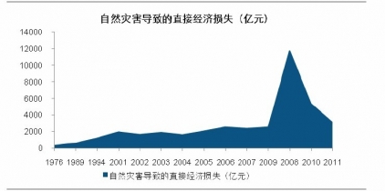 第一, 自然災(zāi)害防災(zāi)減災(zāi)任務(wù)重,市場(chǎng)龐大。我國(guó)幅員遼闊,自然災(zāi)害數(shù)量大、種類多。剔除2008 年,1976 年來自然災(zāi)害所導(dǎo)致的直接經(jīng)濟(jì)損失持續(xù)擴(kuò)大,其中2008 年直接經(jīng)濟(jì)損失高達(dá)11752 億元,占GDP 比重近4%,與災(zāi)害頻發(fā)的日本(0.5%)相比差距甚遠(yuǎn)。2011 年12 約國(guó)務(wù)院辦公廳印發(fā)了《國(guó)家綜合防災(zāi)減災(zāi)規(guī)劃(2011-2015 年)》提出“十二五期間需統(tǒng)籌規(guī)劃綜合防災(zāi)減災(zāi)事業(yè)發(fā)展,年均因?yàn)?zāi)直接經(jīng)濟(jì)損失控制在GDP 的1.5%以內(nèi)”。在民政部的《國(guó)家自然災(zāi)害救助應(yīng)急預(yù)案》中強(qiáng)調(diào)建立中央到地方、基于衛(wèi)星地理測(cè)繪、通信網(wǎng)絡(luò)、信息共享的輔助決策系統(tǒng),同時(shí)加大對(duì)自然災(zāi)害監(jiān)測(cè)、預(yù)警、評(píng)估和應(yīng)急輔助決策系統(tǒng)的投入。根據(jù)國(guó)土部的預(yù)測(cè),僅地質(zhì)災(zāi)害隱患點(diǎn)就涉及700 個(gè)縣市的208 萬平方公里,對(duì)應(yīng)未來十年專業(yè)級(jí)監(jiān)測(cè)預(yù)警系統(tǒng)裝備市場(chǎng)容量就達(dá)到1000 億元,市場(chǎng)非常龐大。