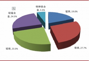 鐵合金有90%以上的比例直接用于煉鋼,另有10%以內(nèi)的份額用于鑄鐵、有色金屬冶煉及化工、有色金屬合金等領(lǐng)域。