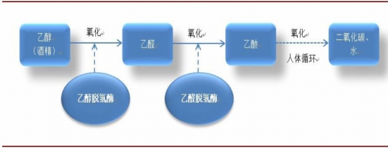 酒精在人體內(nèi)先由人體本身就有的乙醇脫氫酶將乙醇氧化成乙醛,再由乙醛脫氫酶將乙醛氧化成乙酸,代謝完后通過人體循環(huán)最終將乙酸氧化分解成二氧化碳和水。整個代謝過程中最為關(guān)鍵的就是乙醇脫氫酶與乙醛脫氫酶的氧化作用。乙醇脫氫酶的差異相對較小,代謝過程中其活性會消耗。而乙醛脫氫酶代謝的個體差異大。總體上東方人乙醛脫氫酶的基因有缺陷,導致其活性比較低,而歐洲人一般乙醛脫氫酶的活性高,代謝快。乙醛脫氫酶活性較低會阻礙乙醛的氧化,從而導致乙醛在人體中濃度增大,人喝酒時臉紅即是乙醛濃度過高的表現(xiàn)。乙醛雖比甲醛毒性小,但是也有相當?shù)亩拘裕w現(xiàn)在人體的各個臟器中,能夠殺死肝臟細胞和變性,長期累積會導致中毒和器官損傷,甚至引發(fā)肝癌和肝硬化。美他多辛作為一種乙醛脫氫酶激活劑,能夠加快乙醛的代謝速度,從而保護肝臟細胞與器官。