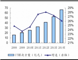 2008-2014年醫(yī)療IT解決方案市場規(guī)模以及增速預測