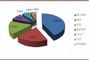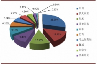 世界鈦鐵礦主要集中于中國、澳大利亞、印度、南非、巴西等國家,而金紅石礦主要集中于澳大利亞、南非、印度、塞拉利昂、斯里蘭卡等國家。
