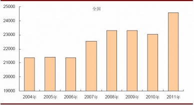 2004-2011年我國鈦鐵礦石儲量(萬噸)