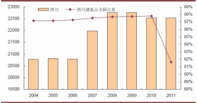 我國探明的鈦資源分布在21個。ㄗ灾螀^(qū)、直轄市)共108個礦區(qū)。主要產(chǎn)區(qū)為四川,河北、海南、廣東、湖北、廣西、云南、陜西、山西等地,其中以四川儲量最大,根據(jù)國家統(tǒng)計局統(tǒng)計數(shù)據(jù),2011年我國原生鈦鐵礦儲量達(dá)到了2.46億噸,而四川地區(qū)儲量就達(dá)到2.253萬噸,占到全國儲量的92%。