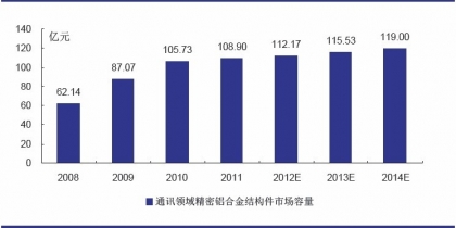 2008-2014年中國通訊精密鋁合金結(jié)構(gòu)件市場容量預測