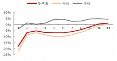 2012年1-11月冰箱累計內(nèi)外銷同比增速