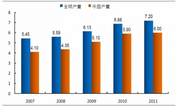 2007-2011年全球鎢礦產(chǎn)量情況(單位:萬噸)