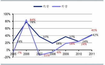 內(nèi)資企業(yè)之所以能夠成為行業(yè)投資的主導(dǎo)力量有兩方面原因: