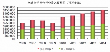 2006-2014年全球電子外包行業(yè)收入預(yù)測