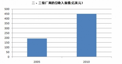 在網(wǎng)絡(luò)通訊終端設(shè)備、便攜式消費電子產(chǎn)品等領(lǐng)域,本土企業(yè)有望實現(xiàn)更大的發(fā)展。根據(jù)調(diào)研,2010年全球范圍內(nèi)電子制造代工服務(wù)行業(yè)中的二、三級廠商的總收入規(guī)模從2005年的191億美元增長到約450億美元,其中一定比例的市場份額被一部分具備規(guī)模優(yōu)勢與綜合服務(wù)能力的中國本土企業(yè)占據(jù)。這些本土企業(yè)有望在未來幾年內(nèi)實現(xiàn)快速增長,成為國內(nèi)電子制造代工服務(wù)行業(yè)的主要廠商。