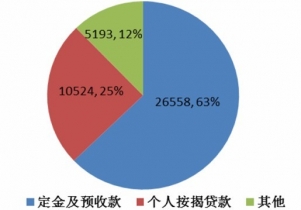 其它資金來(lái)源中定金及預(yù)收款、個(gè)人按揭貸款的規(guī)模和占比(億元)