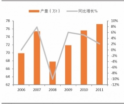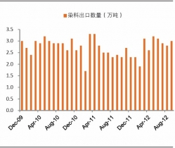 2001年全國染料產(chǎn)量達(dá)到33.74萬噸,截止2011年染料產(chǎn)量達(dá)到77.24萬噸,年均增長率為8.64%,目前中國年出口染料數(shù)量在30萬噸以上,占世界染料貿(mào)易的四分之一以上,出口區(qū)域遍布全球,但主要集中于東南亞,該地區(qū)占我國染料出口的60%以上。