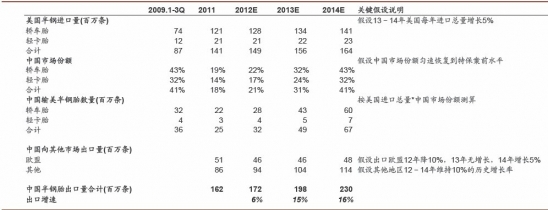 從量的角度來看,我們預(yù)期受美國(guó)特保取消拉動(dòng),未來兩年我國(guó)半鋼胎出口增速將達(dá)到15%和16%,遠(yuǎn)高于近五年10%的復(fù)合增長(zhǎng)率。增量一方面來自中國(guó)輸美半鋼胎市場(chǎng)份額的恢復(fù),另一方面則來自美國(guó)輪胎進(jìn)口容量的擴(kuò)大。市場(chǎng)份額來看,2009年前三季度中國(guó)輸美半鋼胎合計(jì)約3560萬條,占美國(guó)進(jìn)口總量的41%。而2011年出口美國(guó)的半鋼胎僅2530萬條,進(jìn)口份額下降至18%。進(jìn)口容量方面,2009年受經(jīng)濟(jì)危機(jī)影響,美國(guó)輕型車胎的進(jìn)口量和消費(fèi)量均處于低谷,進(jìn)口量?jī)H為1.15億條,而2012年的進(jìn)口量達(dá)到1.49億條,累計(jì)增長(zhǎng)了30%。隨著美國(guó)經(jīng)濟(jì)逐漸走出低谷,12年美國(guó)輕型車產(chǎn)、銷量分別增長(zhǎng)19%和14%,美國(guó)輪胎市場(chǎng)進(jìn)口總量有望持續(xù)增長(zhǎng)。