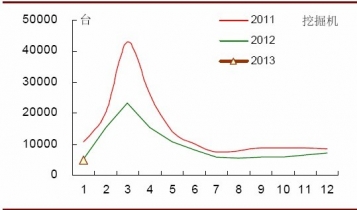 2011-2013年挖掘機(jī)行業(yè)銷量示意圖