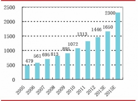 2005-2015年我國天然氣消費量(億立方米)
