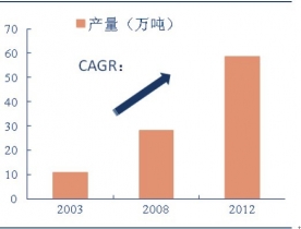 在此期間,國(guó)內(nèi)裝飾原紙市場(chǎng)也實(shí)現(xiàn)迅速擴(kuò)張,2012年我國(guó)裝飾原紙(包括表層耐磨紙、平衡原紙)產(chǎn)銷規(guī)模已達(dá)58.7萬(wàn)噸,2003-2012年年復(fù)合增速約20.2%,成為全球最大的裝飾原紙生產(chǎn)基地。