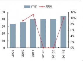 2009-2014年丁酮行業(yè)產(chǎn)能增速單位:萬(wàn)噸