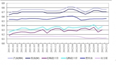 天然氣不僅是清潔能源,而且其價格較為低廉。與其他能源相比,除動力煤外,單位熱值下LNG價格遠低于其他能源價格。在2007年《國家發(fā)改委關于調整天然氣價格有關問題的通知》中提出,為引導車用天然氣合理消費,各地要按照與90#汽油零售基準價格不低于0.75∶1的比價關系,即車用天然氣的價格定為90#汽油的75%,這意味著按現(xiàn)在90#汽油7.48元/升計算車用天然氣價格不得高于5.61元/方。正由于LNG的經濟性,使得其在車用燃料中具有明顯的成本優(yōu)勢。