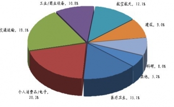2011年全球3D打印設(shè)備下游應(yīng)用行業(yè)分布