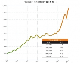根據(jù)國際鋼鐵協(xié)會發(fā)布的《世界鋼鐵統(tǒng)計數(shù)據(jù)2012》,2011年全球粗鋼產(chǎn)量為1518百萬噸,同比增長6.23%。