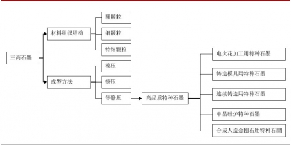 特種石墨主要指高強(qiáng)度、高密度、高純度石墨制品(簡(jiǎn)稱“三高”石墨),按照其成型方式可以分為等靜壓成型特種石墨、模壓成型各種石墨、擠壓成型特種石墨。