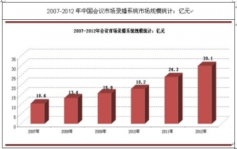 視頻會議作為一個朝陽行業(yè),其發(fā)展過程一直伴隨著各種行業(yè)趨勢的新舊交替。其實,縱觀視頻會議的發(fā)展普及歷程,正是各種行業(yè)概念的大力宣傳為行業(yè)注入了活力。2010年以來視頻會議市場發(fā)展迅猛,政府機構、企事業(yè)單位、都相繼建立起多功能錄播會議室及報告廳,視頻會議市場已經(jīng)由技術完善階段進入應用普及階段。會議領域的錄播系統(tǒng)市場規(guī)模增長態(tài)勢明顯,數(shù)據(jù)顯示:我國會議領域錄播系統(tǒng)市場規(guī)模從2009年時的15.9億元增長至2012年的30.1億元。會議領域占錄播系統(tǒng)市場總規(guī)模的19.8%。
