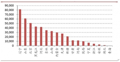 根據(jù)國家統(tǒng)計(jì)局的數(shù)據(jù),我國2011年的城市供暖面積約47.3億平方米,其中遼寧、山東、北京、黑龍江等省占比較高,遼寧一省占比就達(dá)17%。所以,東北三省、山東和北京是我國熱量表最大的銷售區(qū)域。