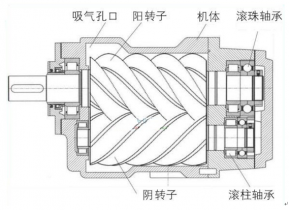 本文導讀:螺桿膨脹機主機主要由一對螺桿轉子、缸體、軸承、同步齒輪、密封組件以及聯(lián)軸節(jié)等極少的零件組成,結構很簡單,其氣缸呈兩圓相交的“∞”字形,兩根按一定傳動比反向旋轉相互嚙合的螺旋形陰、陽轉子平行地置于氣缸中。