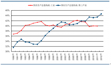 1990年后我國工業(yè)和第三產(chǎn)業(yè)對GDP的貢獻(xiàn)率情況