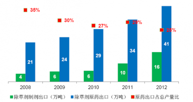 2008-2012年中國(guó)除草劑出口數(shù)據(jù)分析:萬(wàn)噸
