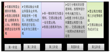 從1949 年至現(xiàn)在,我國的交通運輸商品稅改革歷經(jīng)5 個階段,其內(nèi)容從單一稅制發(fā)展復合稅制,從商品稅到營業(yè)稅再到增值稅試點,稅制稅率設(shè)置日趨規(guī)范、科學,保障了國家稅收利益,推動了交通運輸業(yè)的發(fā)展。