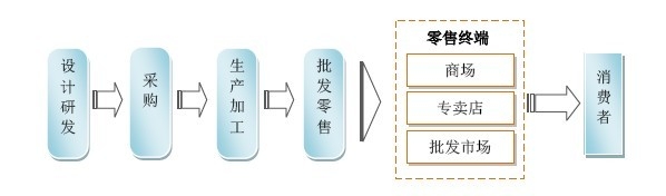 自主品牌經(jīng)營模式通常包括設(shè)計研發(fā)、采購、生產(chǎn)加工、批發(fā)零售幾個環(huán)節(jié)。