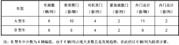目前,市場(chǎng)上的城軌車輛主要分為A型車和B型車,各種車型配備的門數(shù)量如下: