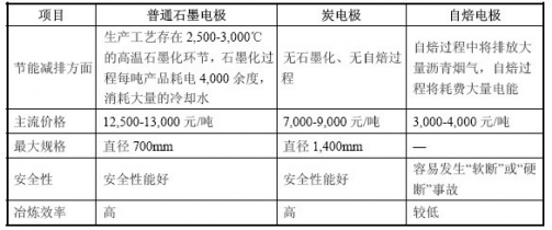 石墨電極在生產(chǎn)過程中需要將焙燒品加熱至2,500-3,000℃高溫進(jìn)行石墨化,石墨化一噸電極消耗4,000 余度電能,同時(shí)還消耗大量的冷卻水。炭電極是將原料經(jīng)破碎、篩分、混捏、成型、焙燒,機(jī)加工后而制成產(chǎn)品,無石墨化工序,因此使用炭電極可以極大的降低電耗、節(jié)約能源,同時(shí)也符合國家節(jié)能環(huán)保的政策方向。