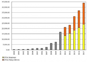 圖:2000-2015年全球光伏新增裝機(jī)量市場(chǎng)及預(yù)測(cè)分析
