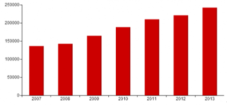 2007-2013年中國(guó)水泥產(chǎn)量統(tǒng)計(jì)分析 萬(wàn)噸