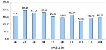 圖表 2012年1-12月河南電冷熱飲水機產(chǎn)量狀況