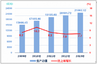 2013-2014年上海市生產(chǎn)總值及其增長速度