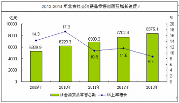 圖表44 2007-2014年北京社會(huì)消費(fèi)品零售額及增長速度