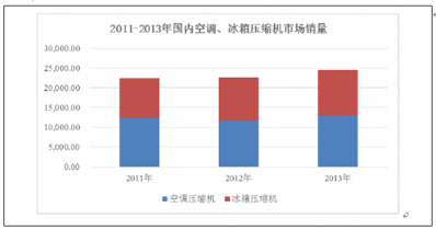 2011-2013 年中國空調、冰箱壓縮機的市場銷量如下: