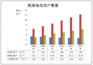 2008年-2014年我國電信用戶數(shù)量如下圖所示: