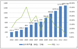 一、2013-2014年我國涂料產量分析