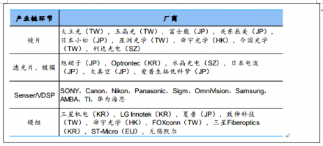 全球光學攝像頭產(chǎn)業(yè)鏈重要公司列表