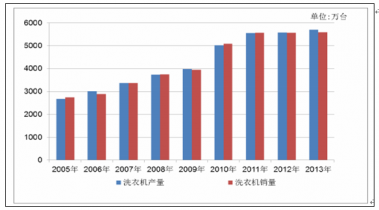 2005~2014年我國洗衣機產銷量情況