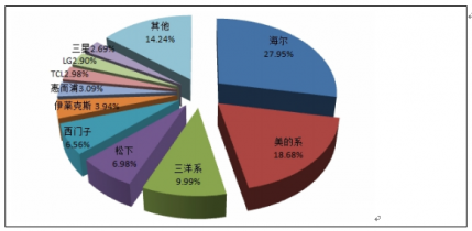 國內主要洗衣機品牌市場占有率情況