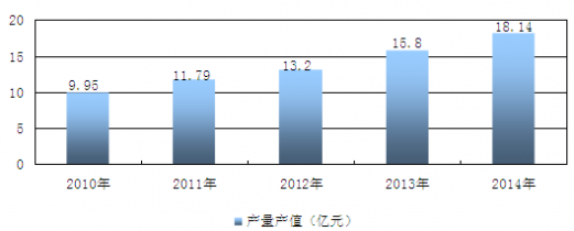 2010-2014年我國放射性藥物行業(yè)產(chǎn)量產(chǎn)值