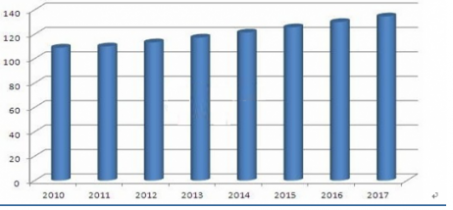 2010-2017年中國出租車行業市場規模分析及預測(單位:萬輛)