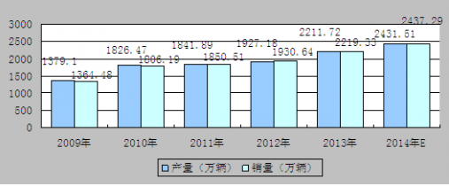2009-2013年汽車產銷量數據統計(單位:萬輛)