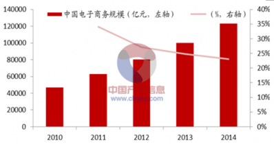 2010-2014年中國(guó)電子商務(wù)規(guī)模及增長(zhǎng)率